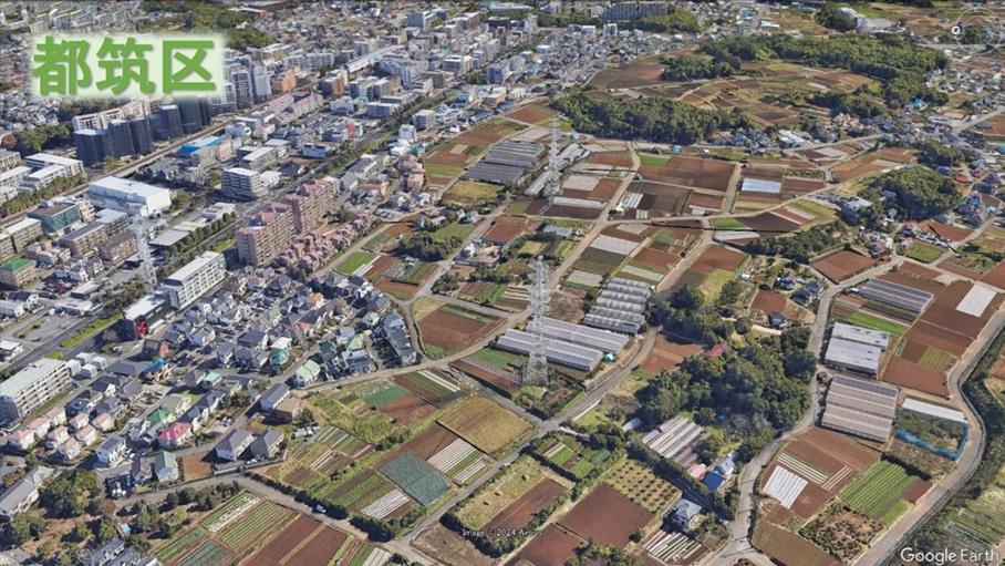 横浜市都筑区の農業専用地区 出典:Google Earth(Image©2024 Airbus)