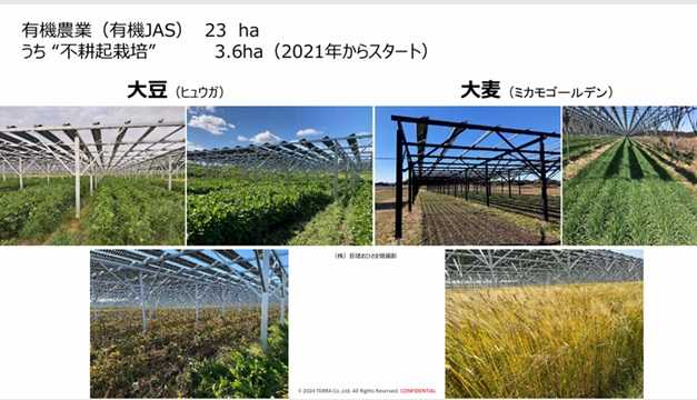 2つの農業法人が、有機(オーガニック)で農業を実践。現在23ヘクタールで有機農業、うち3.6ヘクタールで不耕起栽培を行っている。
