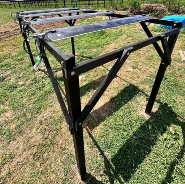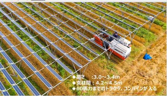 設備の高さは約3m30cm~3m40cm超、支柱間隔は約4m50cmで、60馬力までのコンバインやトラクターが進入可能。