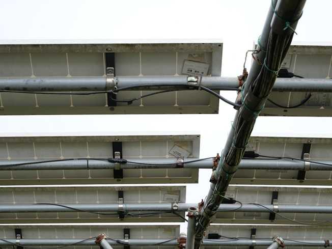 耐風性: パネルが細いため風圧荷重が小さく、風に強い。2019年の台風15号(推定最大瞬間風速50m/s超)の際も、単管パイプの設備を含め被害はゼロだった。